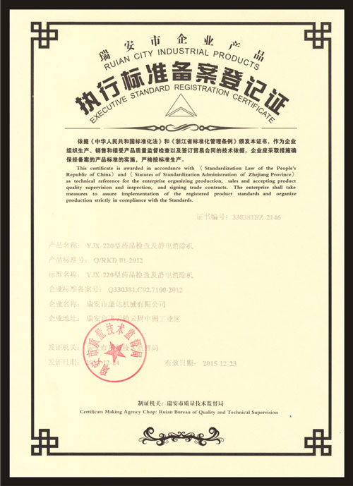YJX-220型藥品檢查(靜電消除)機(jī)獲瑞安市科學(xué)技術(shù)進(jìn)步獎(jiǎng)