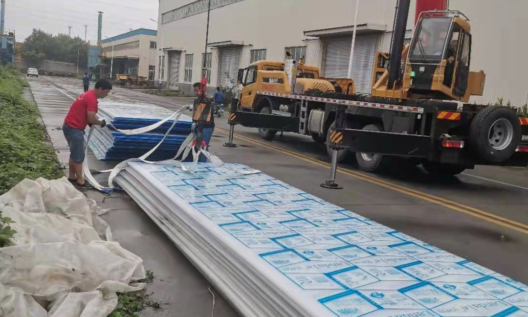 5.可彎曲性:可依設(shè)計(jì)圖在工地現(xiàn)場(chǎng)采用冷彎方式,安裝成拱形,半圓形頂和窗。最小彎曲半徑為采用板厚度的175倍,亦可熱彎。