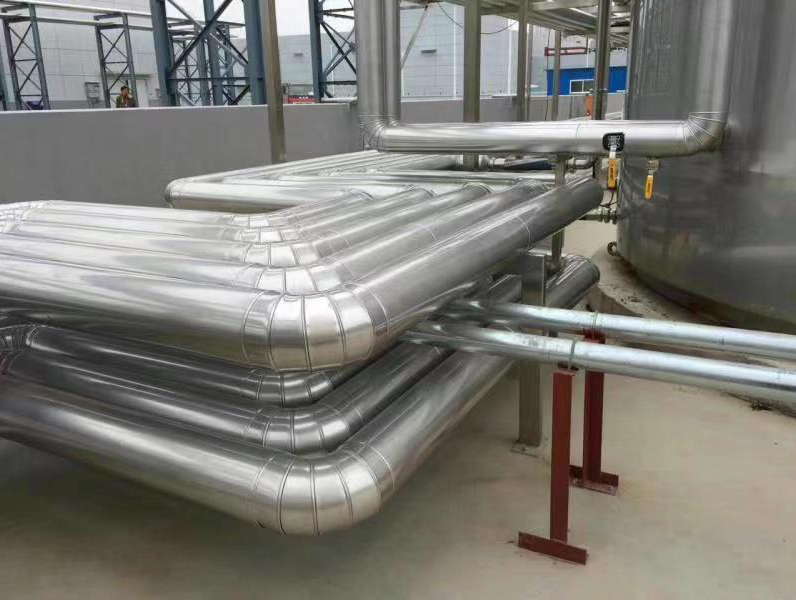 3.管道的保溫一般由保溫層和保護(hù)層兩部分構(gòu)成。保溫層的厚度由技術(shù)經(jīng)濟(jì)比較確定。保護(hù)層一般用石棉水泥涂抹或用瀝青玻璃布、金屬皮包覆,必要時(shí),在保護(hù)層外還應(yīng)采取防水措施。保護(hù)層的外表面應(yīng)當(dāng)整潔、光滑、美觀并與周圍環(huán)境相協(xié)調(diào),有時(shí)還刷上一層色漆,以區(qū)別不同用途的管道。