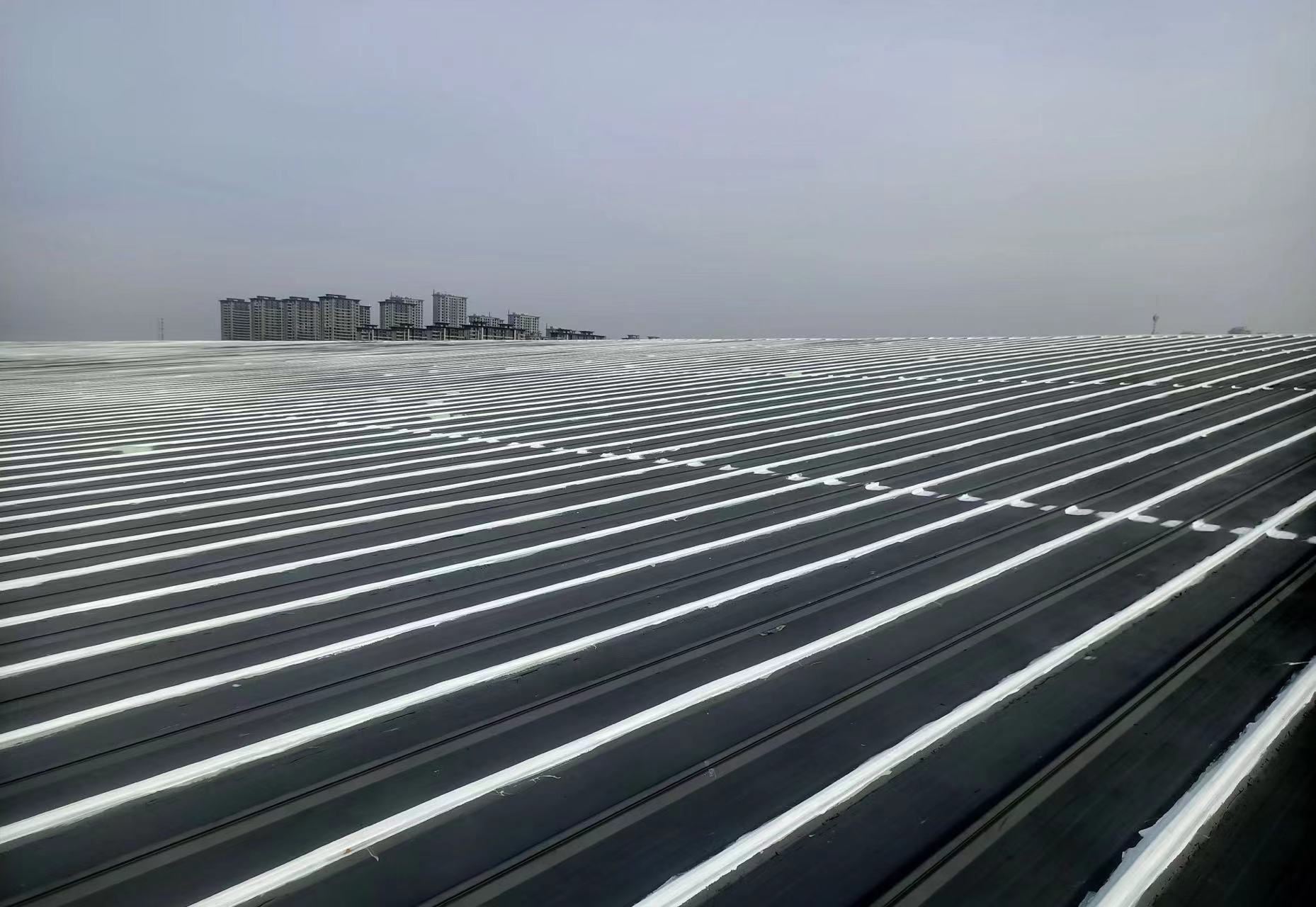3.此金屬屋面防水系統(tǒng)斷裂拉伸強度高達2.8MPa,彈性高達300%,完全符合金屬屋面形變的要求。